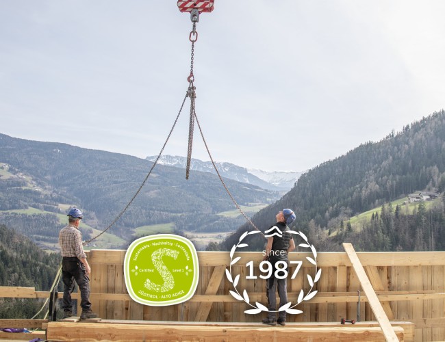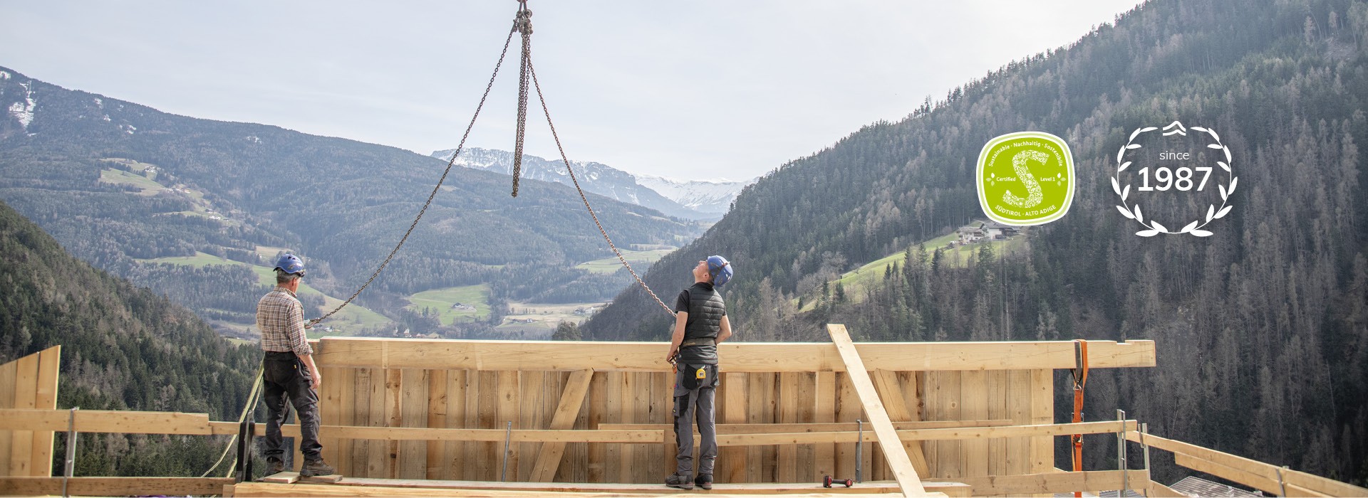 Wir sind Südtiroler Zimmerer, Holzbaumeister und Tischler und lösen allerlei schwierige Aufgaben nach dem Motto: geat net gibs net. Wer uns kennt, weiß: Auf uns kann man zählen. Wir sind zwar typische Handwerker, aber auch pünktliche Profis – immer am Start, wenn wir gebraucht werden, vor allem bei Notfällen. So entstehen stabile Ergebnisse aus wohlduftendem und robustem Holz, die jahrelang halten. Wir denken nachhaltig und arbeiten mit Hölzern aus heimischen Wäldern. Metall-Zubehör wie Nägel und Schrauben beziehen wir aus europäischer Produktion. Je näher, desto besser.