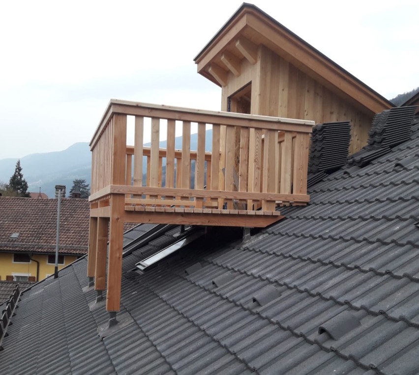 Tetti, balconi, pareti, terrazzi – costruiamo, ristrutturiamo e ripariamo di tutto, purché si tratti di un prodotto in legno. Effettuiamo controlli periodici del tuo tetto e ti spieghiamo per filo e per segno come prendertene cura – allo scopo di mantenerlo bello e intatto nel tempo. Questo fa parte del nostro servizio tetti. Tra le nostre prestazioni rientrano sia il risanamento di tetti vecchi sia la costruzione di nuove capriate – con tanto di lucernario. Installiamo dispositivi di sicurezza come linee vita, ganci di sicurezza e sistemi paraneve. Su richiesta, per un tetto perfettamente impermeabile, organizziamo le opere di lattoneria. Un danno deve essere riparato in tempi brevi? Chiamaci e saremo da te!